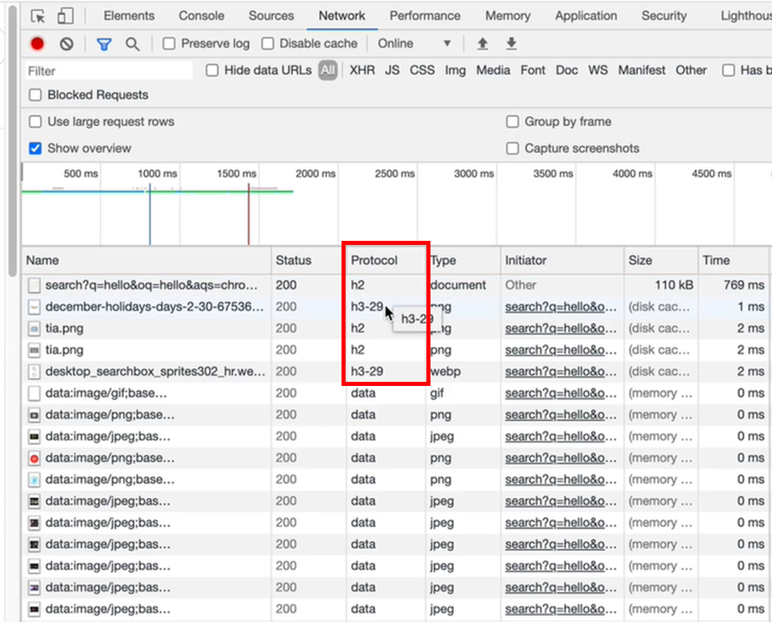 크롬에서 검색할 경우에 이런식으로 결과가 나오는데, h2 = http/2, h3 = http/3 임.