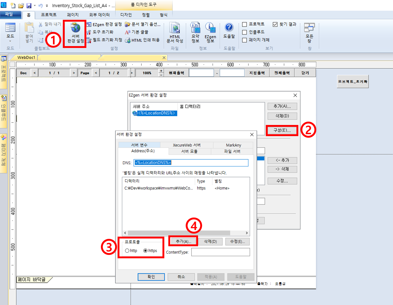 리포팅 툴인 Ezgen 파일 생성시, 서버가 http 인지 https 인지에 따라 다르게 저장해야한다.