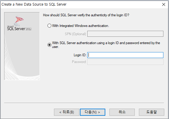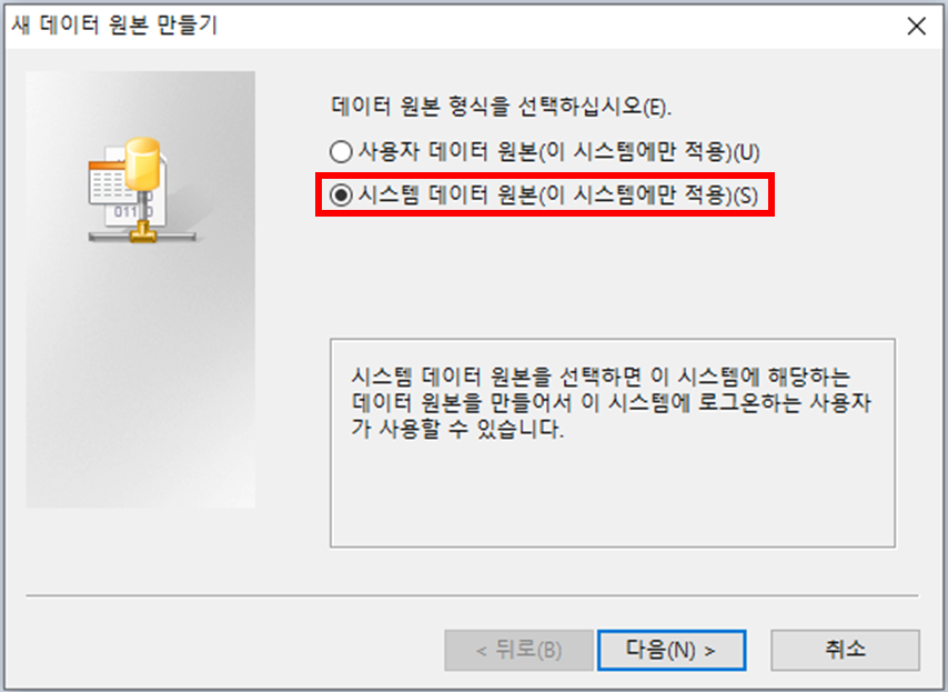 2. 로컬이 아닌 DB 서버와 연결할 경우 시스템 데이터 원본 선택
