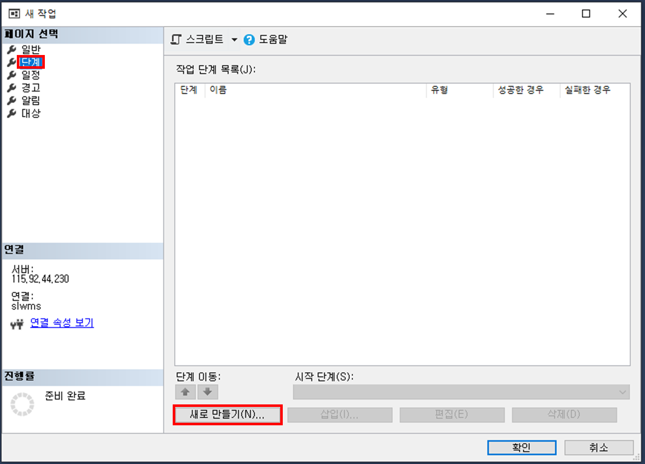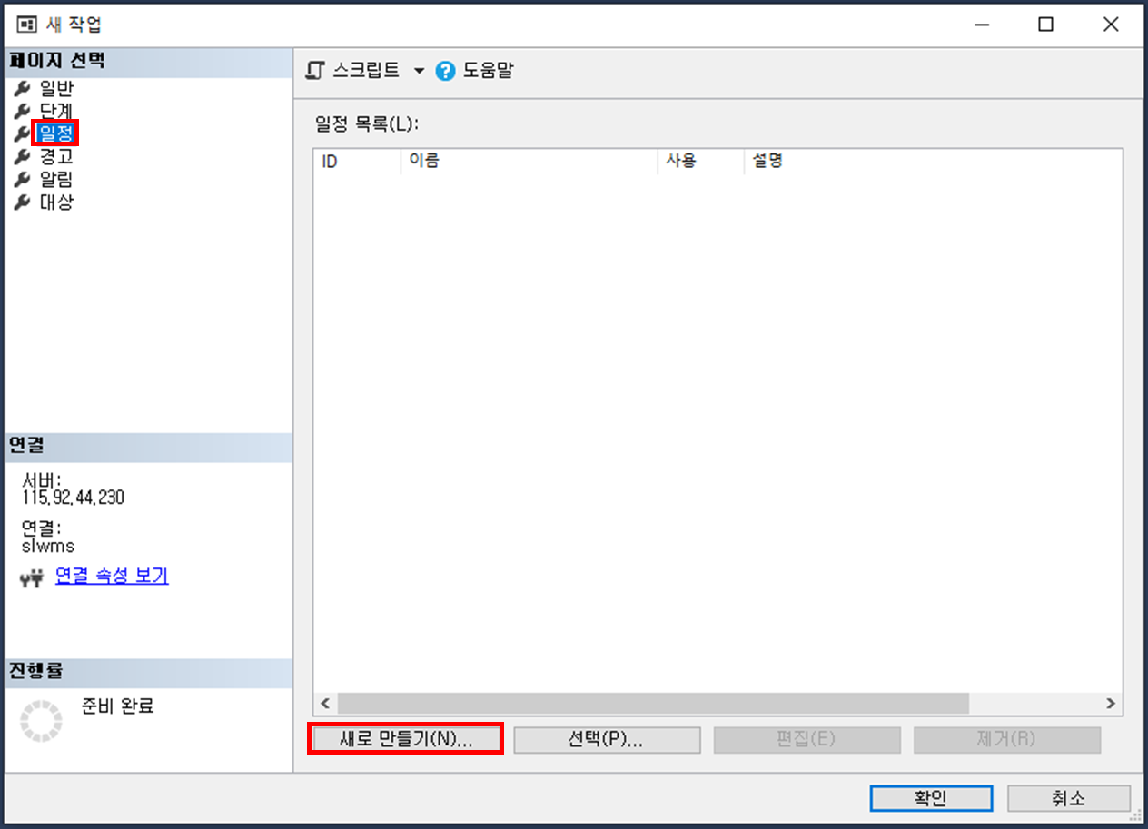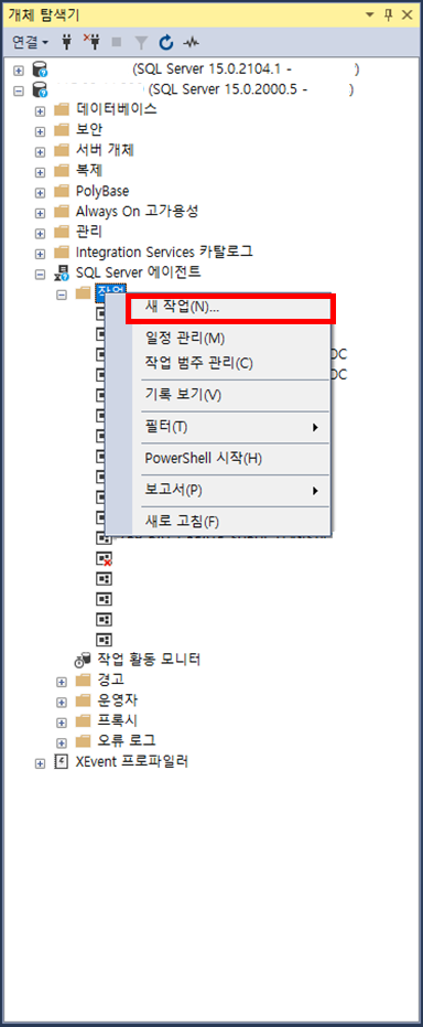 1. SQL Server 에이전트 > 작업 > 우클릭 > 새 작업(N)...