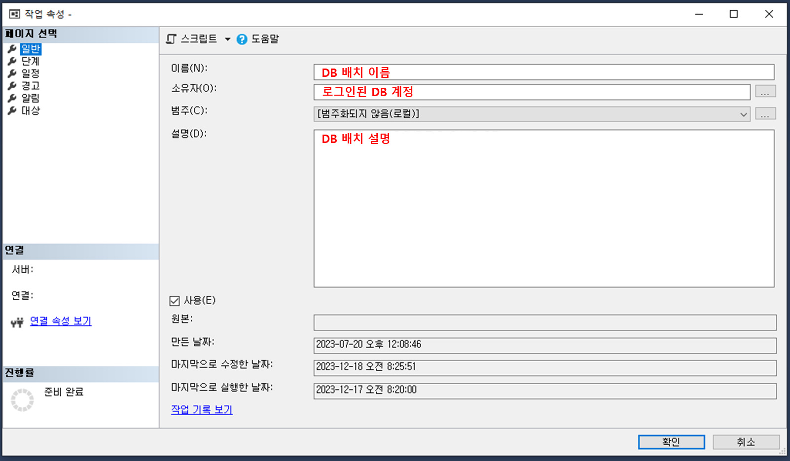 5. 일정 > DB 배치 실행시킬 시간 설정