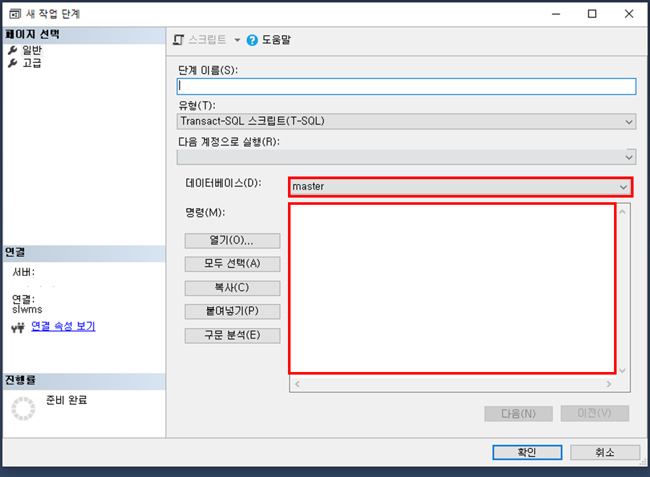 (이때, 데이터베이스는 master 가 아닌 실제 실행시키려 하는 DB를 선택해야함.**)