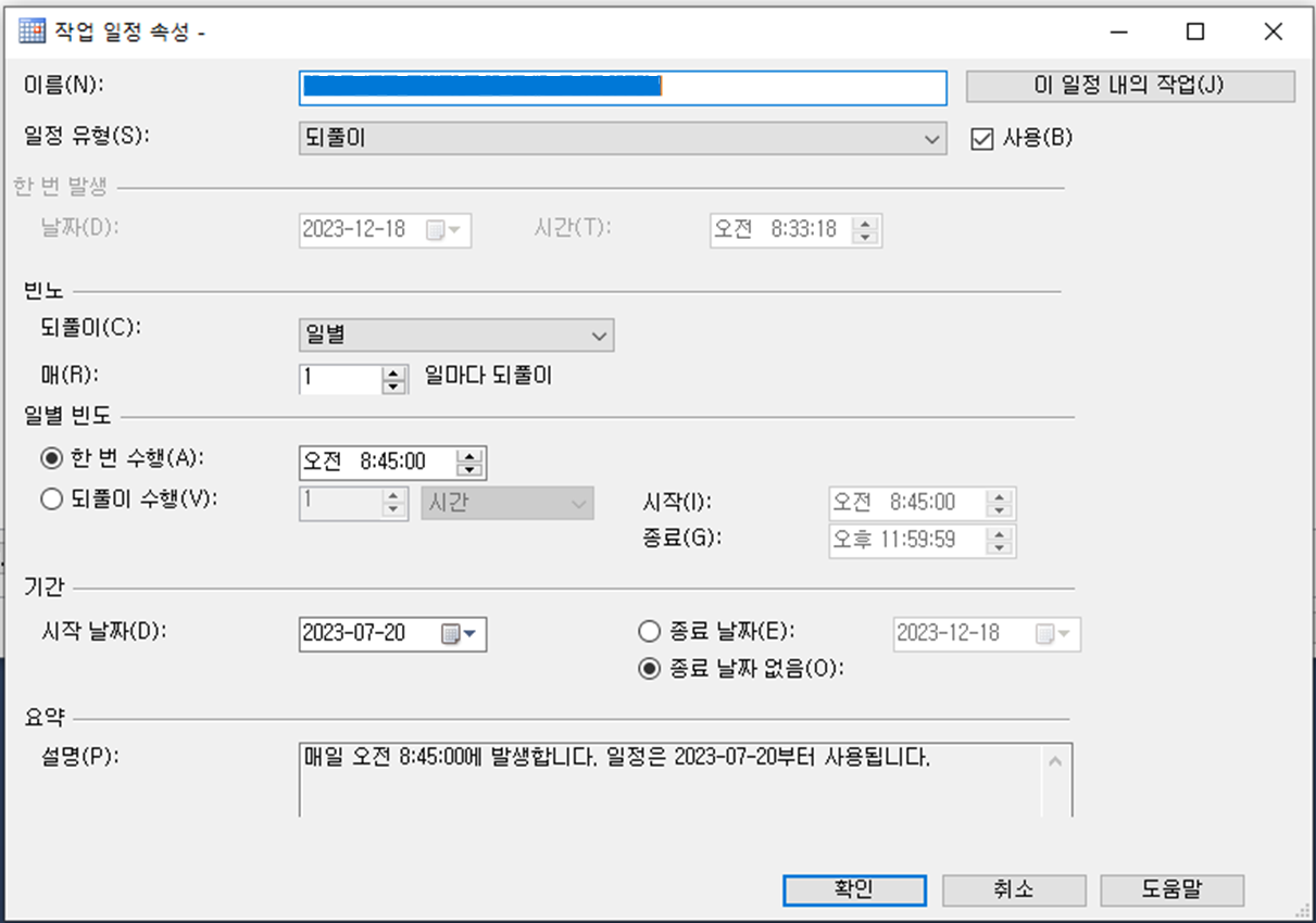5. 일정 > DB 배치 실행시킬 시간 설정