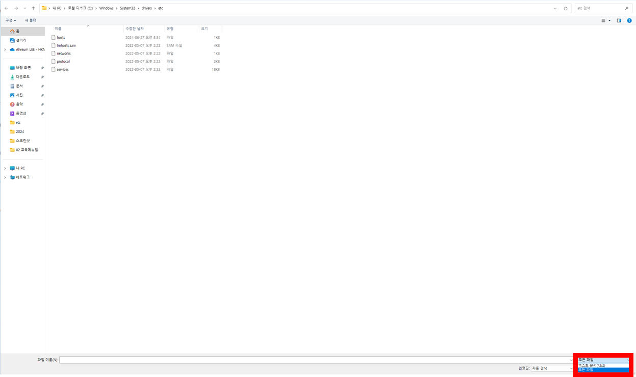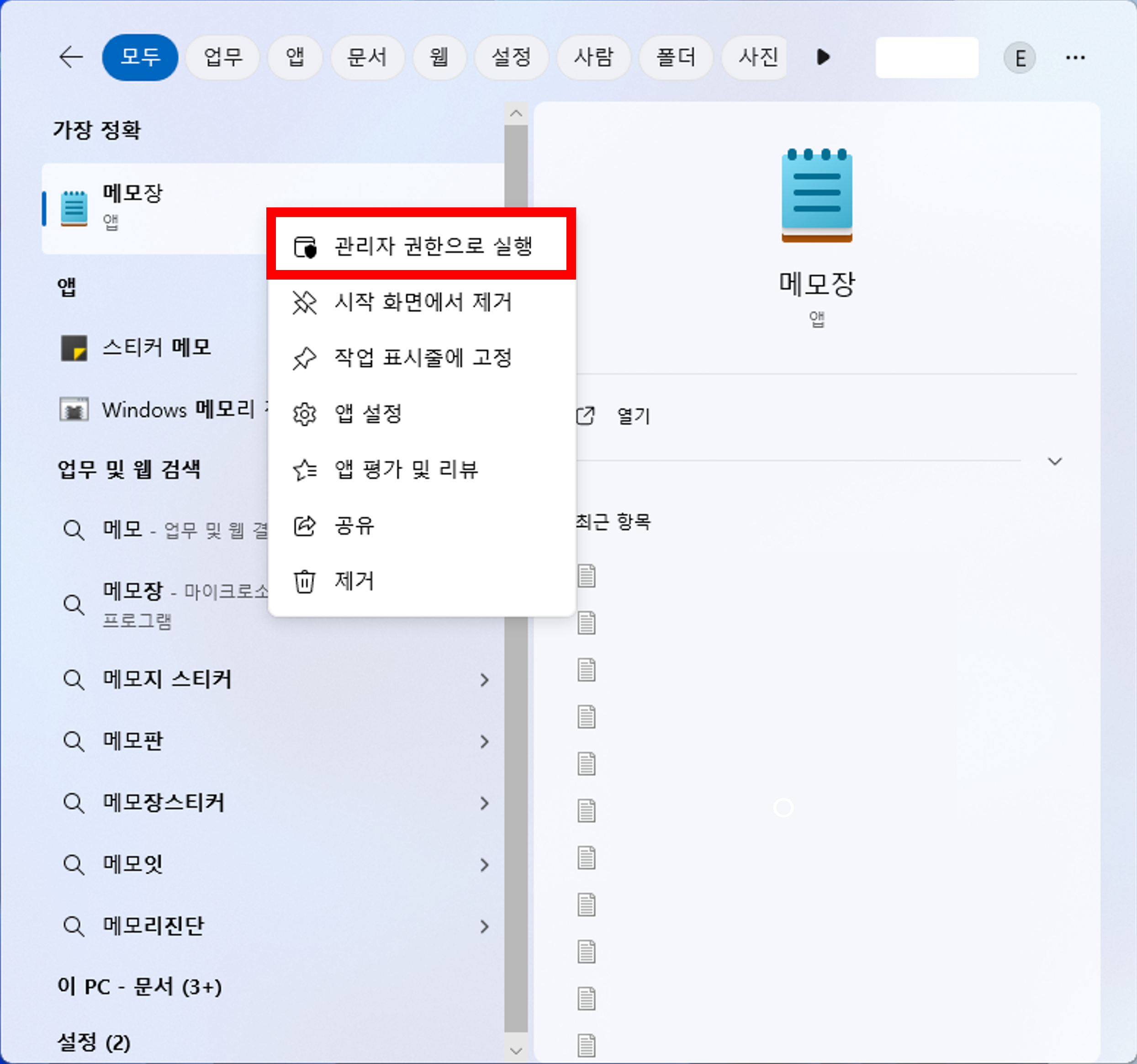 반드시 관리자 권한으로 메모장을 먼저 연 후에 수정이 가능하다.