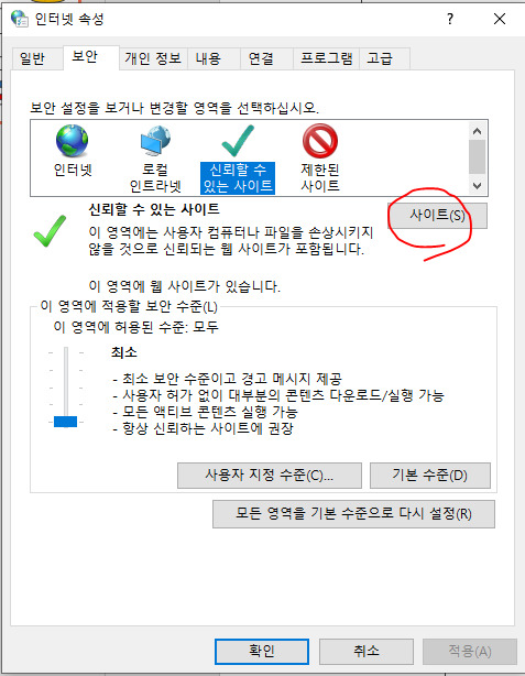 3. 보안 > 사이트 > 영역에 웹사이트 추가