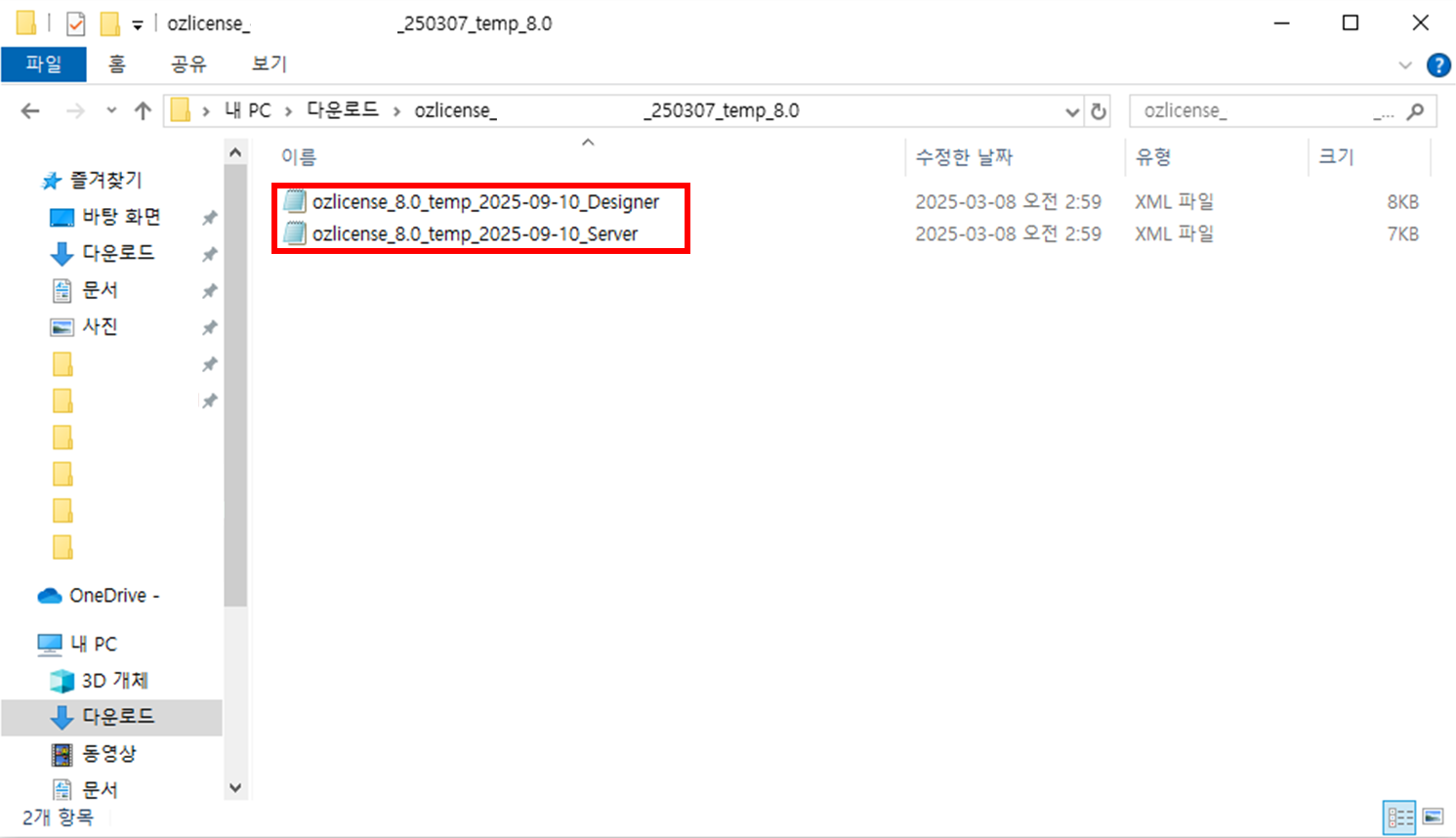 3. 아래 경로에 ozlicense.xml 파일을 놓는다.
