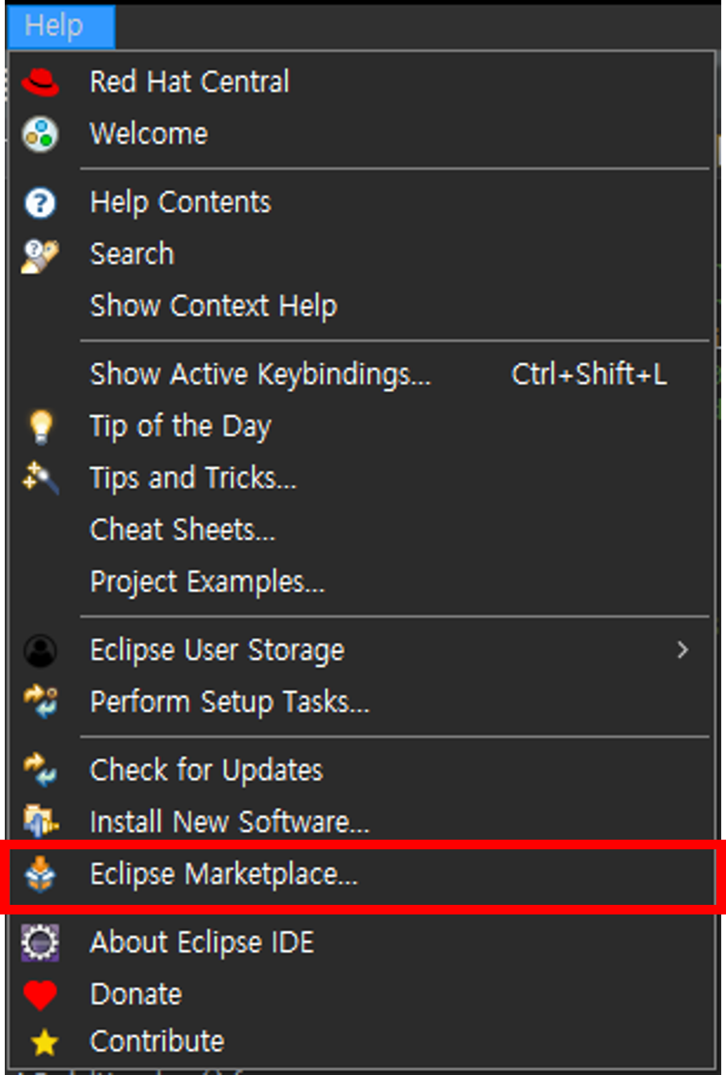 1. 이클립스 상단 Help > Eclipse Marketplace...
