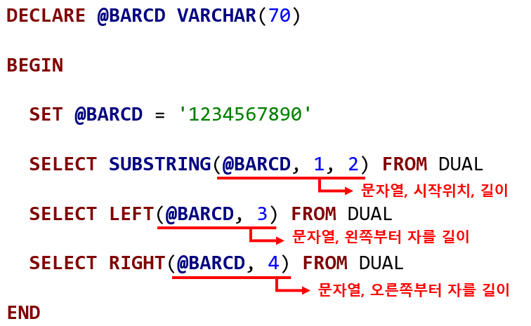 문자열을 자를 때, SUBSTRING, LEFT, RIGHT 함수를 주로 사용한다.