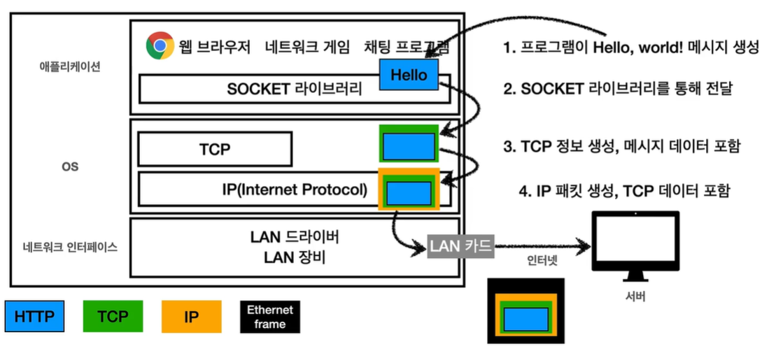 LAN 카드 통해 나갈때 이더넷 프레임이 포함되어 나감.