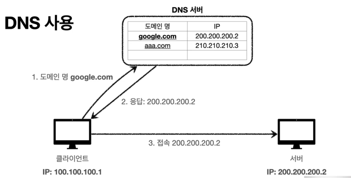 DNS 서버에 도메인명, IP 가 저장되어 있어서 도메인 명으로 서버 찾아가고,