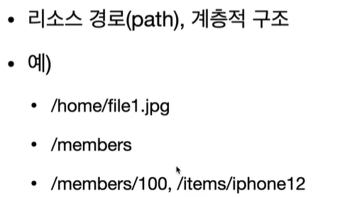 - Resource: 자원, URI로 식별할 수 있는 모든 것(제한 X)