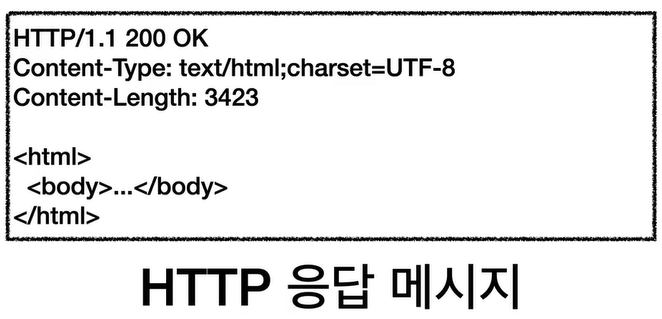 응답 메세지를 받은 서버에서는 TCP/IP 패킷 깐다음에 안의 메세지 확인해서, 웹 브라우저 HTML을 렌더링 해서 보여주는 것임. 결과적으로 HTML 결과물을 보게되는 것.