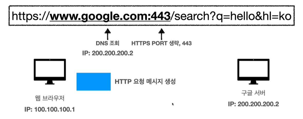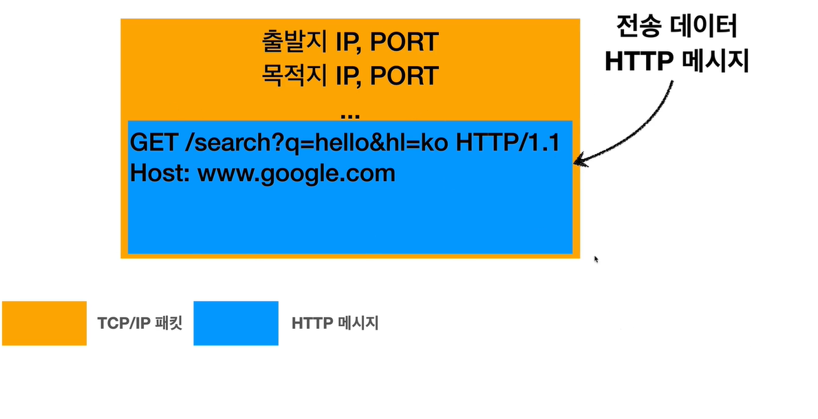 요청패킷 도착하면 구글서버가 tcp/ip 패킷을 까서 버리고, http 메세지 꺼내서 해석함.