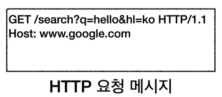 https://www.google.com/search?1=hello&hl=ko 형태로 메세지 던짐.
