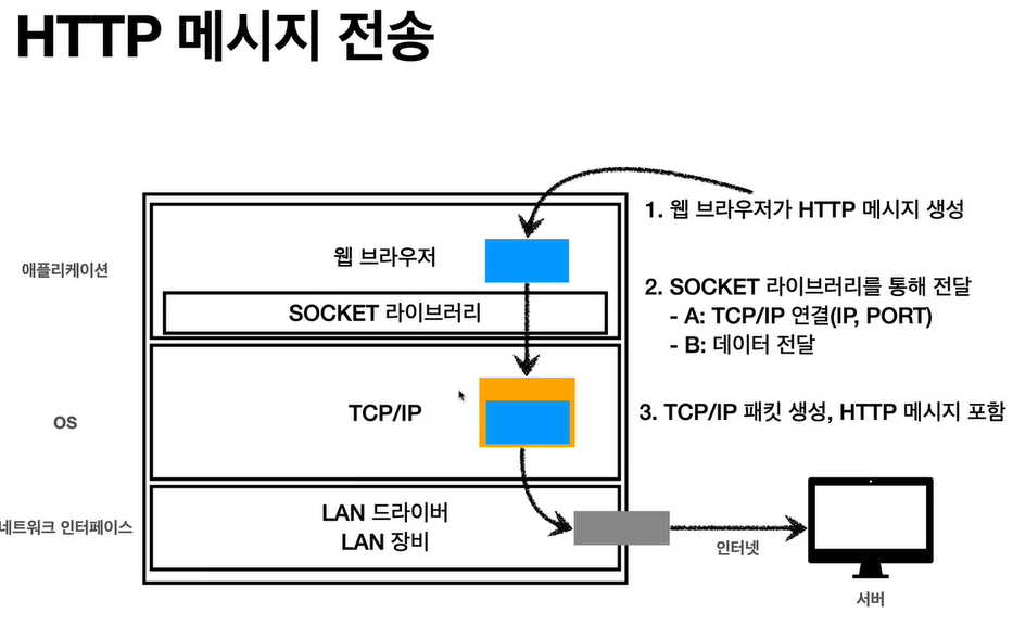 정리하면 아래와 같은 순서로 메세지가 생성 및 전달되어서 수많은 인터넷 노드를 통해서 http 메시지가 전달됨.